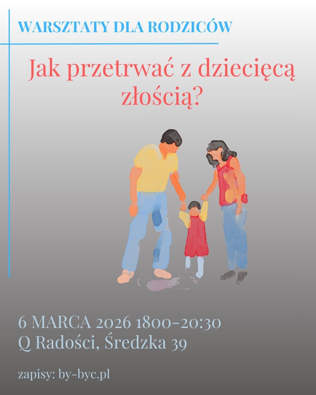 Warsztat ma charakter psychoedukacyjny i praktyczny — opiera się na wiedzy o rozwoju emocjonalnym dzieci oraz realnych doświadczeniach rodziców. Spotykamy się w małej grupie, która umożliwi swobodną pracę i zadawanie pytań.